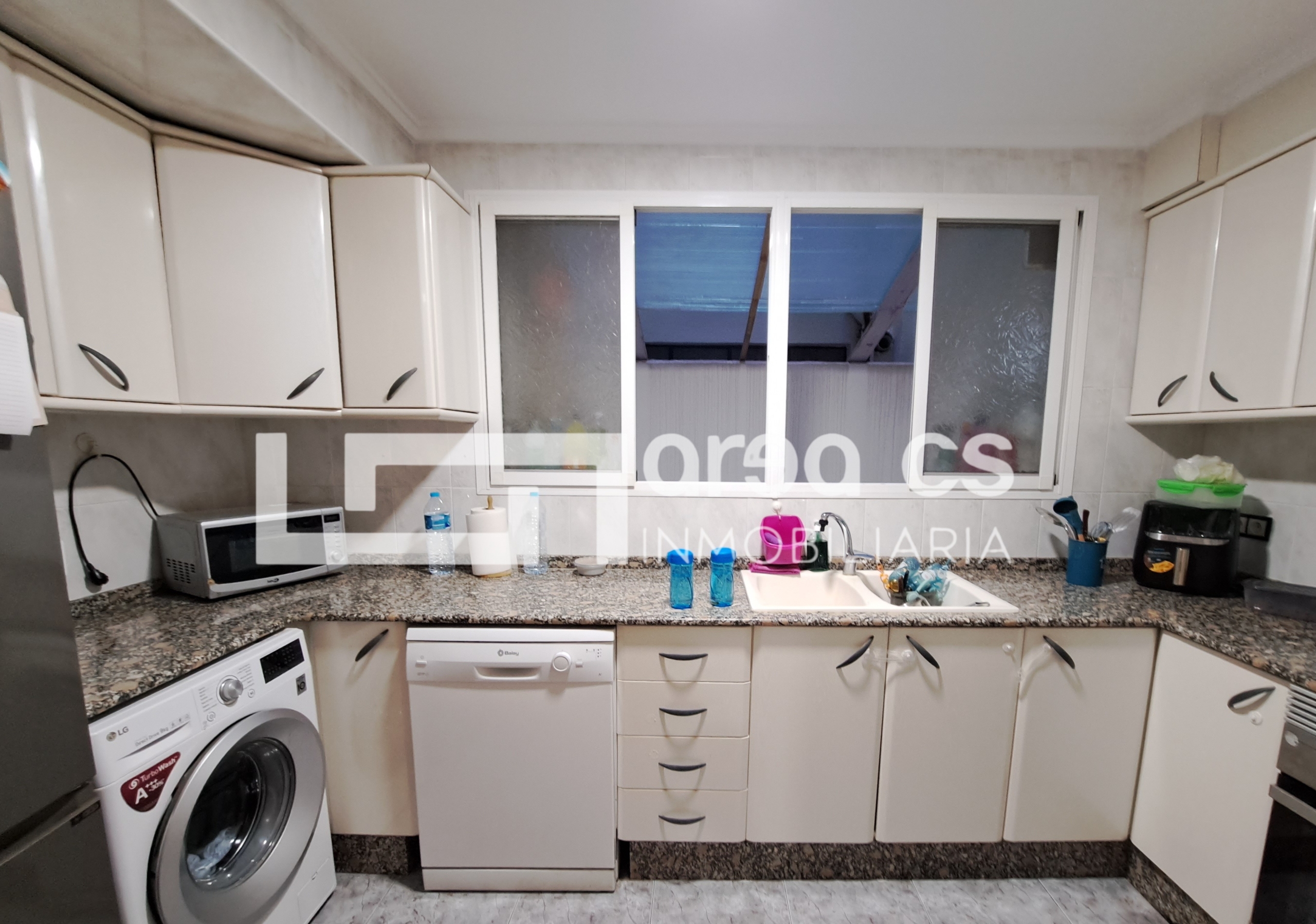 Este espacioso piso en primera planta cuenta con 4 dormitorios, 2 baños, terraza y 2 patios, ofreciendo un ambiente ideal para familias. El apartamento cuenta con una cocina totalmente equipada con nevera, lavadora y lavavajillas, horno y vitrocerámica. Además tiene un luminoso salón-comedor que se abre a una terraza corrida que a su vez tiene acceso desde uno de los dormitorios.