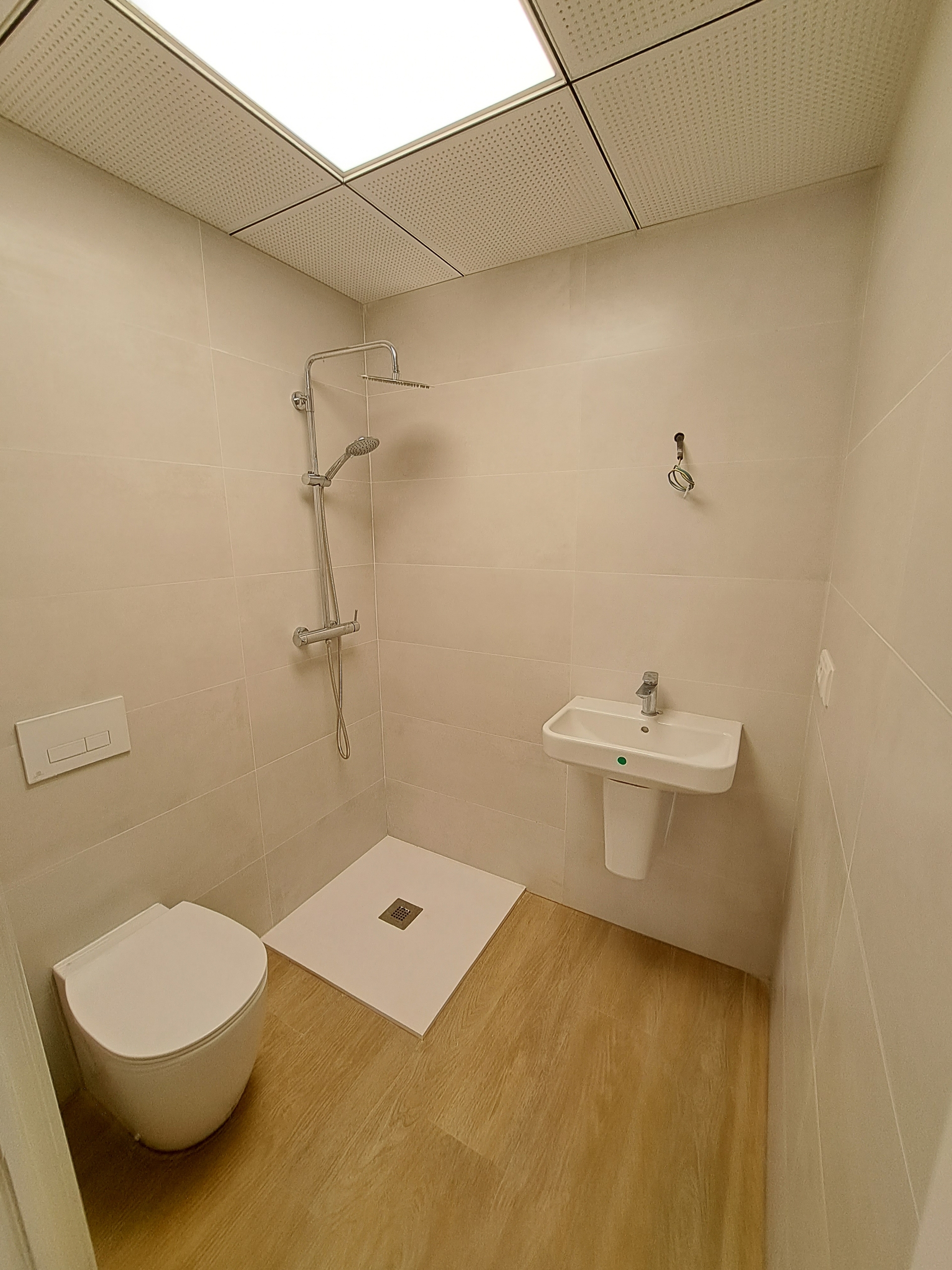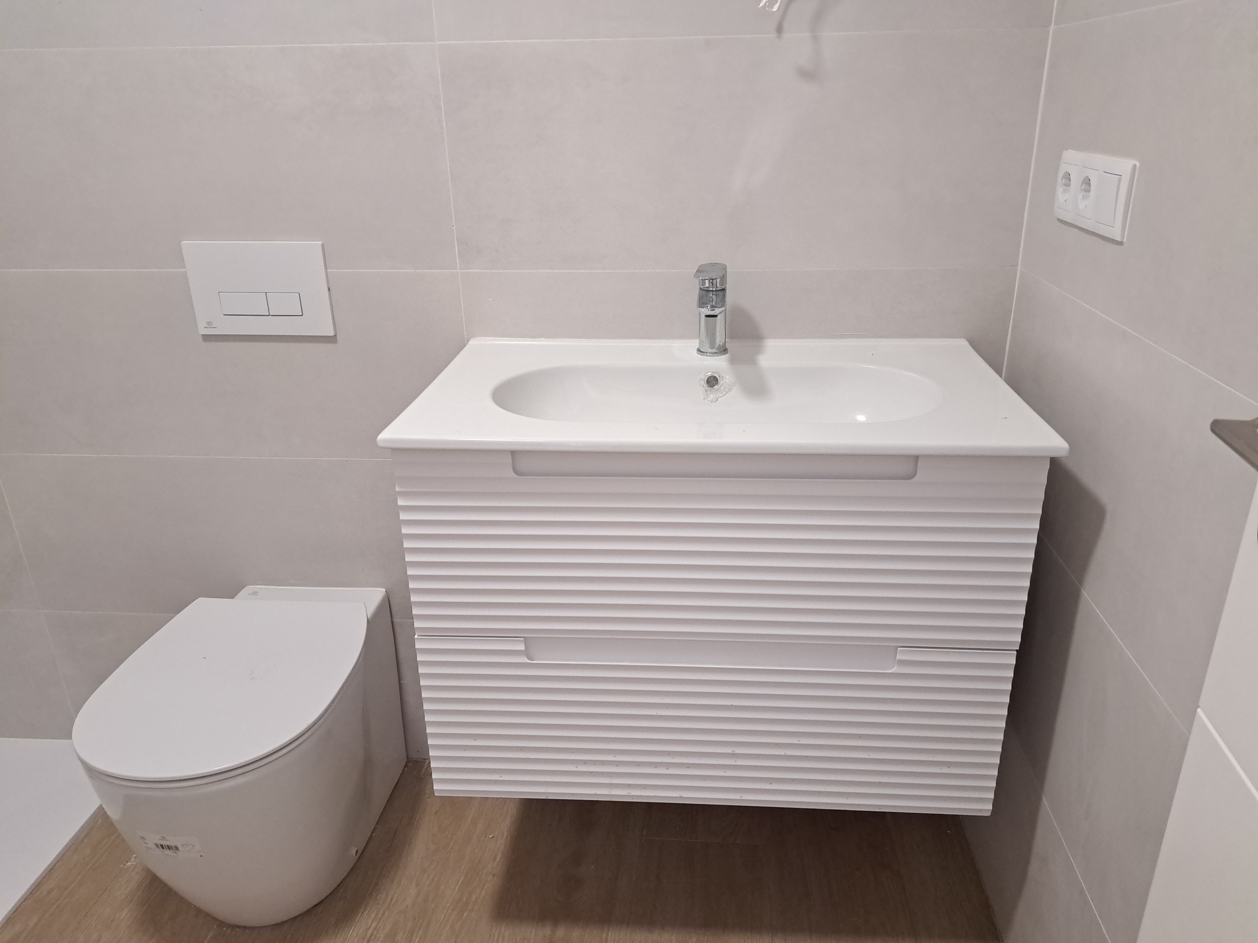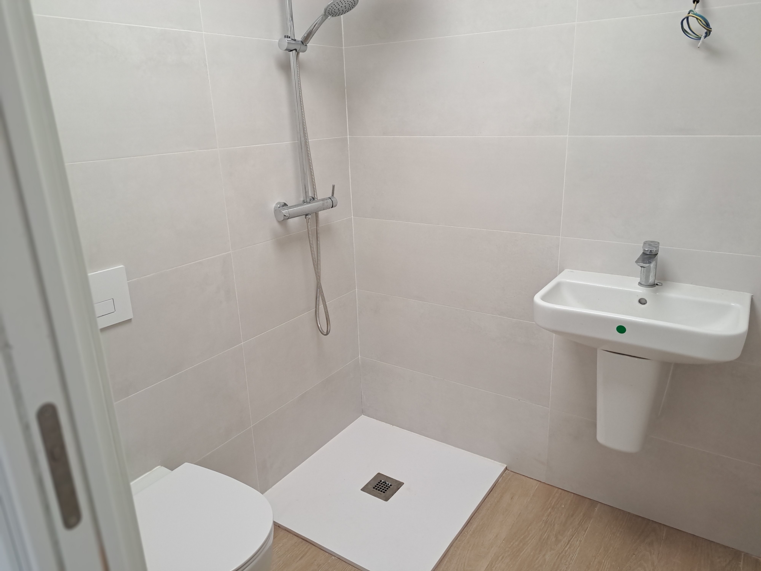 La atención a los detalles es evidente en cada rincón, desde el videoportero automático con pantalla a color hasta el suelo de gres porcelánico que imita la madera. Los techos lisos con falsos techos de alta calidad y armarios empotrados en blanco crean un ambiente elegante y contemporáneo. La seguridad está garantizada con una puerta blindada, y las puertas de paso en madera blanca añaden un toque de calidez. La cocina, completamente amueblada, junto con el sistema de aerotermia para el agua caliente sanitaria y la instalación de aire acondicionado frío y calor por conductos, demuestran el compromiso con la comodidad y la eficiencia energética.